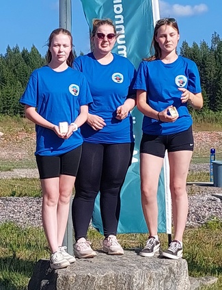 Suomen Mestaruus irtosi SML pienoishirven joukkuekilpailussa Lopella yhdessä kuvassa Mäntsäläläisten Alina Aaltosen ( kuvassa vas. ) ja Katri Torvastin kanssa ( kuvassa oik. )